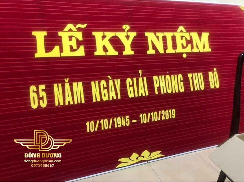 - Sự kết hợp của chữ vàng, trắng dán trên nền khung bảng nỉ đỏ mang sự nổi bật, trang trọng, thu hút mọi sự chú ý cho hội nghị.
