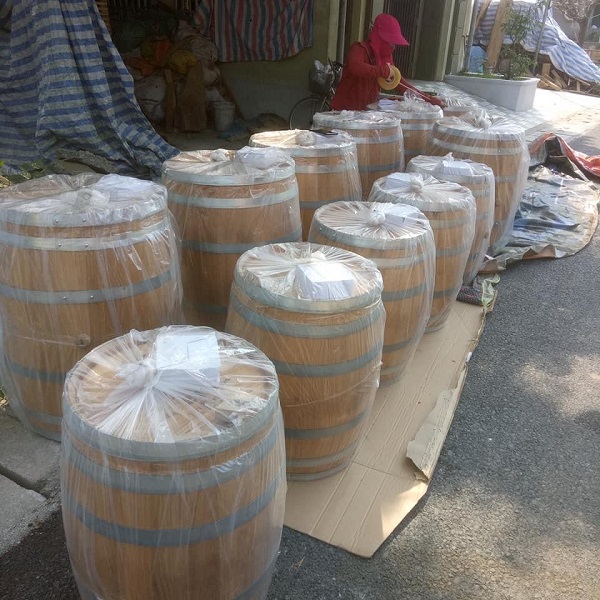 - Tráng bằng nước âm rồi đổ đi. Sau đó tiến hành đổ rượu vào khoảng 3/4 thùng, đóng kín nắp và ghi dõ ngày giờ để tiện theo dõi.