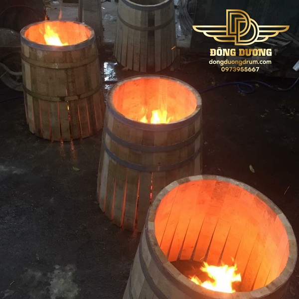 Quá trình đốt lửa trong cho thungf gỗ sồi