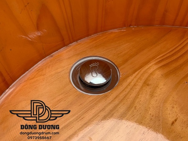 Đáy thùng được lắp van xả nhấn phi 68mm cao cấp, ống ruột gà nhựa phi 34 dài 70cm dẫn thoát nước thuận tiện.