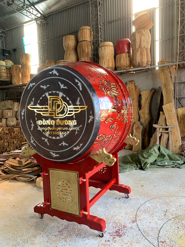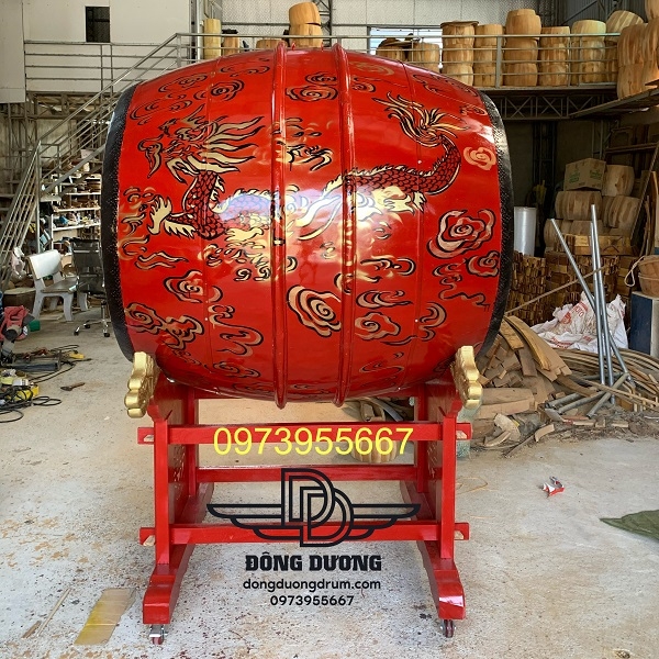 - Khách hàng về tận xưởng Đông Dương để lựa chọn trực tiếp các mẫu trống đình chùa sơn vẽ rồng được trưng bày tại xưởng hoặc đặt mẫu trống có kích thước riêng của khách hàng.